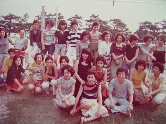 左から2番目 1975年サマー・レクレーション(香川県仁尾町)レブロン(株)本社美容部長ら。